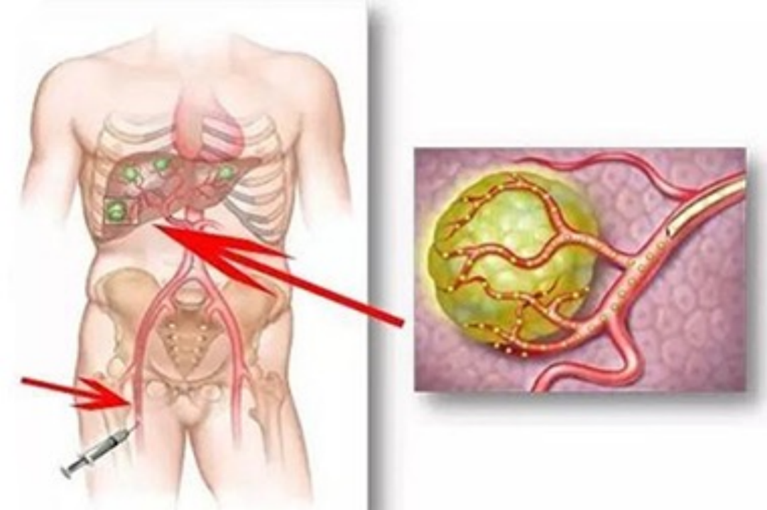 圖2(玻璃或樹脂微球注(zhu)入到(dao)肝腫瘤(liu)的供血動脈內(nei))