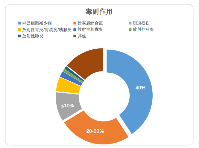還包括放射性膽囊炎(≤2%)、放射性肝炎(≤1%)、放射性肺炎(≤1%)等。