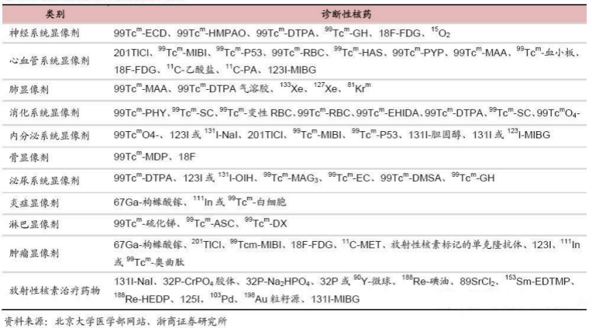 表二:診斷性核藥(yao)分類