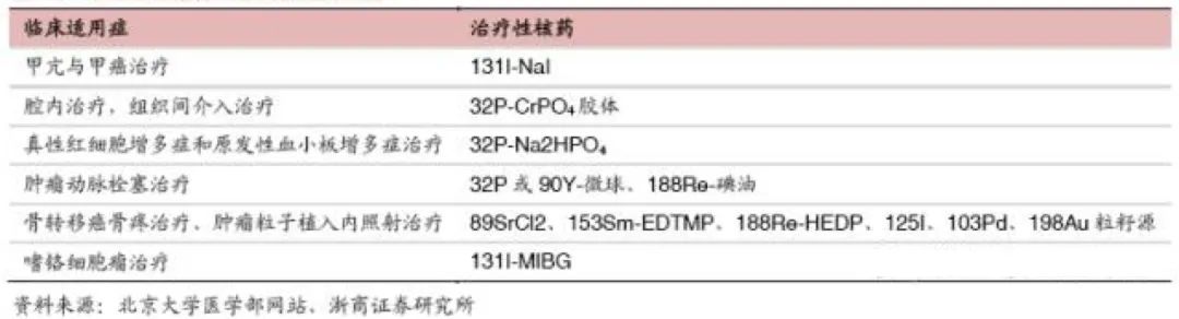 表(biao)三:治療性核藥臨床適應癥
