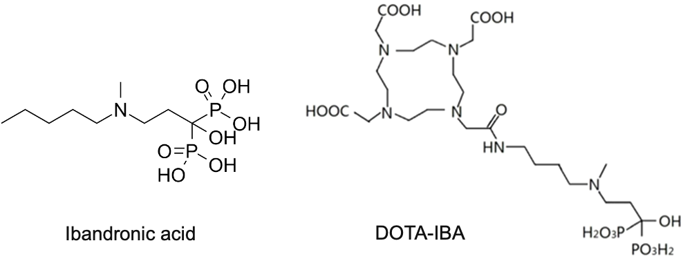 伊班膦酸鈉(Ibandronate)是由瑞士羅氏制藥公司開發的第三代雙膦酸鹽類,注射劑最早于1996年在歐盟獲批上市,用于治療惡性腫瘤所致高鈣血癥及多發性骨髓瘤和實體瘤的骨轉移等,并可預防和治療骨質疏松癥,是目前適應證最廣的雙膦酸鹽藥物,其特點是高效、作用時間長、低毒、使用方便、可以長間歇給藥等。2019年,伊班(ban)膦酸鈉注(zhu)射液(Bondronat)在(zai)國內上(shang)市(shi),目前伊班(ban)膦酸鈉注(zhu)射液已被納入(ru)中國醫保乙類藥(yao)品(pin)范疇,米內網數據顯示,2022年(nian)該藥(yao)物(wu)在(zai)中國公立醫療(liao)機構(gou)終(zhong)端銷售額突破(po)10億元大關,市(shi)場前景廣闊。西南醫科大學附屬醫院核醫學科團隊(dui)在(zai)基(ji)于該結構(gou)成功開發出(chu)新型放射性藥(yao)物(wu)(68Ga/177Lu-DOTA-IBA),該藥(yao)物(wu)展(zhan)現出(chu)諸多優異特性,藥(yao)代(dai)動力學表現良好(hao),即便在(zai)低劑量下也能(neng)發揮出(chu)顯著(zhu)的(de)療(liao)效,且耐(nai)受(shou)性強,未(wei)出(chu)現明顯不良反應,為患者(zhe)帶來了新的(de)希望。