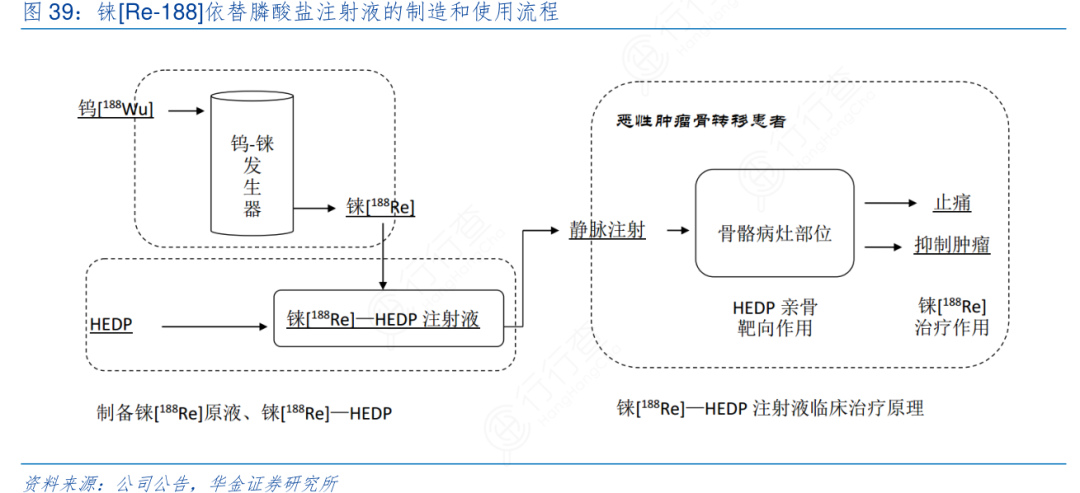 同類藥物還有錸[188Re]依替膦酸鹽注射液。前文已提到,1977年,這款第一代雙膦(lin)(lin)(lin)酸(suan)鹽(yan)(yan)藥物(wu)(wu)依(yi)替(ti)膦(lin)(lin)(lin)酸(suan)鈉上市(shi),依(yi)替(ti)膦(lin)(lin)(lin)酸(suan)鹽(yan)(yan)(HEDP)作(zuo)(zuo)(zuo)為一種親骨(gu)(gu)性(xing)(xing)化(hua)學藥物(wu)(wu),其作(zuo)(zuo)(zuo)用機制(zhi)(zhi)明確且安全性(xing)(xing)高(gao),作(zuo)(zuo)(zuo)為最(zui)早上市(shi)的雙膦(lin)(lin)(lin)酸(suan)鹽(yan)(yan)類藥物(wu)(wu),依(yi)替(ti)膦(lin)(lin)(lin)酸(suan)二鈉通過與(yu)骨(gu)(gu)表面(mian)的羥(qian)磷灰石結合,抑制(zhi)(zhi)破骨(gu)(gu)細胞活性(xing)(xing)。然而其藥物(wu)(wu)活性(xing)(xing)和結合力相(xiang)對較(jiao)弱,可能導致骨(gu)(gu)鈣(gai)化(hua)抑制(zhi)(zhi)、干擾骨(gu)(gu)形成,甚(shen)至誘發骨(gu)(gu)折。基(ji)于此結構開發的錸[188Re]依(yi)替(ti)膦(lin)(lin)(lin)酸(suan)鹽(yan)(yan)注(zhu)射液,188Re-羥(qian)基(ji)亞乙基(ji)二膦(lin)(lin)(lin)酸(suan)鹽(yan)(yan)(hydroxyethylidenediphosphonate,HEDP,188Re-HEDP)是(shi)一種具有顯著療效(xiao)的放射性(xing)(xing)藥物(wu)(wu)能緩解轉移(yi)性(xing)(xing)骨(gu)(gu)痛并改善健康相(xiang)關(guan)生活質量(liang)和生存(cun)時間(jian)。