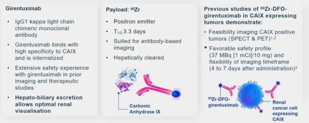 DPI-4452是(shi)一(yi)種與CAIX高親和力結合(he)的(de)環肽,是(shi)由3B Pharmaceuticals GmbH開(kai)發(fa),后獨家(jia)授權給Debiopharm(Debio 0228/0328)。2024年(nian)2月,Michael S. Hofman教授展示了[68Ga]Ga-DPI-4452在ccRCC患者上的(de)出(chu)色的(de)成像,并加速推進[177Lu]Lu-DPI-4452治(zhi)療的(de)后續評估,打(da)算(suan)通(tong)過"診(zhen)斷探針(zhen)+治(zhi)療核藥(yao)"組(zu)合(he)拳形成診(zhen)療閉環,構建CAIX靶(ba)點核藥(yao)診(zhen)療一(yi)體化“護(hu)城(cheng)河”。