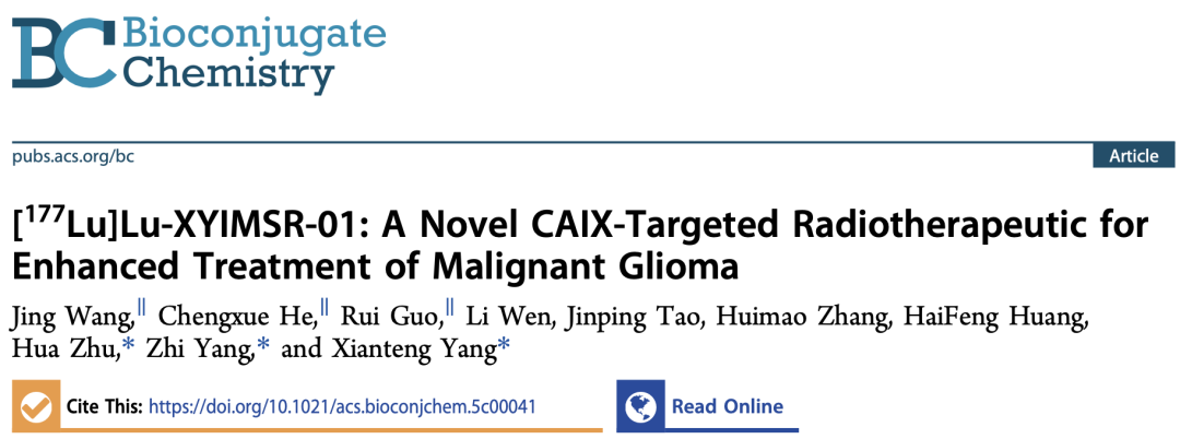 2025年(nian)2月,貴州(zhou)省(sheng)人民(min)醫(yi)院楊(yang)先(xian)騰教(jiao)授與北京(jing)大學(xue)腫瘤醫(yi)院核醫(yi)學(xue)科楊(yang)志主任、朱華(hua)研(yan)(yan)究員為共(gong)同通訊作(zuo)者在《Bioconjugate Chemistry 》期刊上正式(shi)發(fa)表名為“[177Lu]Lu-XYIMSR-01: A Novel CAIX-Targeted Radiotherapeutic for Enhanced Treatment of Malignant Glioma”的研(yan)(yan)究論(lun)文(wen),該研(yan)(yan)究成功(gong)開發(fa)了一(yi)種(zhong)新型的靶(ba)向(xiang)藥(yao)物[177Lu]Lu-XYIMSR-01,為惡性(xing)膠質瘤的治療帶(dai)來(lai)了新的曙光(guang)。