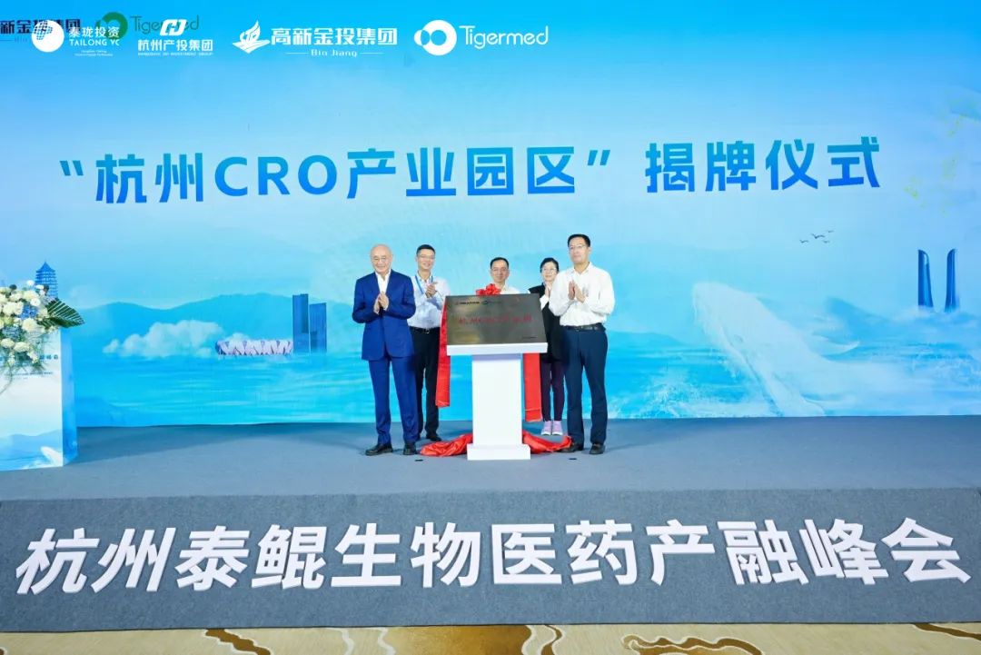 At the unveiling ceremony of the highly anticipated "Hangzhou CRO Industrial Park", Wang Fengbin, Chairman of High-tech Financial Investment Group, and Ye Xiaoping, Chairman of Tigermed, jointly unveiled the park. Pan Xiaohui, Chairman of Hangzhou Industrial Investment Group, Sheng Xiaorong, Deputy Director of the Municipal Investment Promotion Bureau, and Gao Chong, Standing Committee Member of Hangzhou High-tech Zone (Binjiang) District Party Committee, Deputy Director of the Administrative Committee, and Deputy District Mayor, attended the ceremony as witnesses. As a crucial support force in biopharmaceutical research and development, the establishment of this park marks a new stage for Hangzhou in the field of biopharmaceutical R&D outsourcing services. It will further promote the clustering development of CRO industry in the region, attract more high-quality resources, and enhance Hangzhou's overall R&D capabilities and international competitiveness in the biopharmaceutical industry.