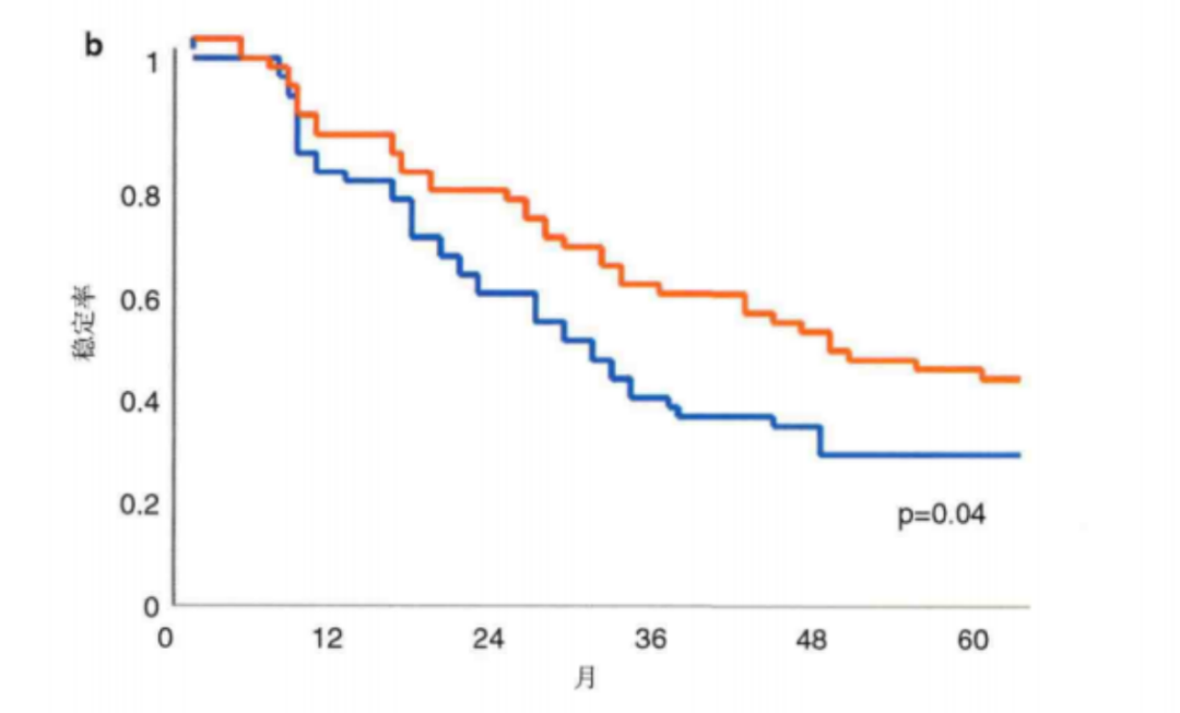 (a)FUDR與 FUDR + RMT Ⅲ期隨機對照研究中的生存(cun)曲線。差異(yi)在第2年和第3年最顯著。由于(yu)肝(gan)外疾(ji)病(bing)的進展,5年生存(cun)率差異(yi)不大。