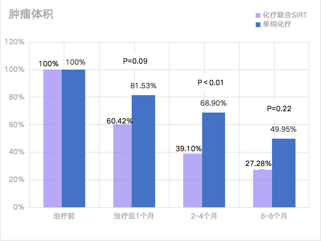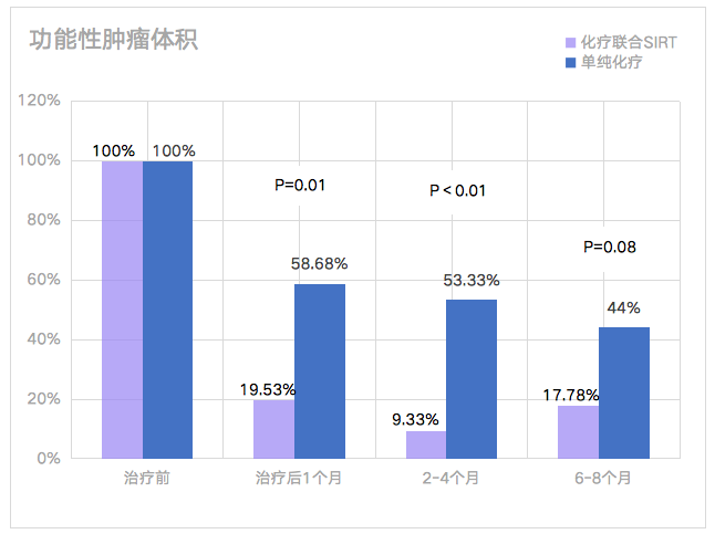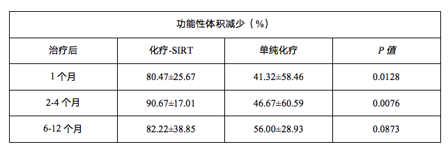 (圖6)腫瘤在接受化療(liao)-SIRT和僅(jin)化療(liao)后功(gong)能性體積減少的中位值