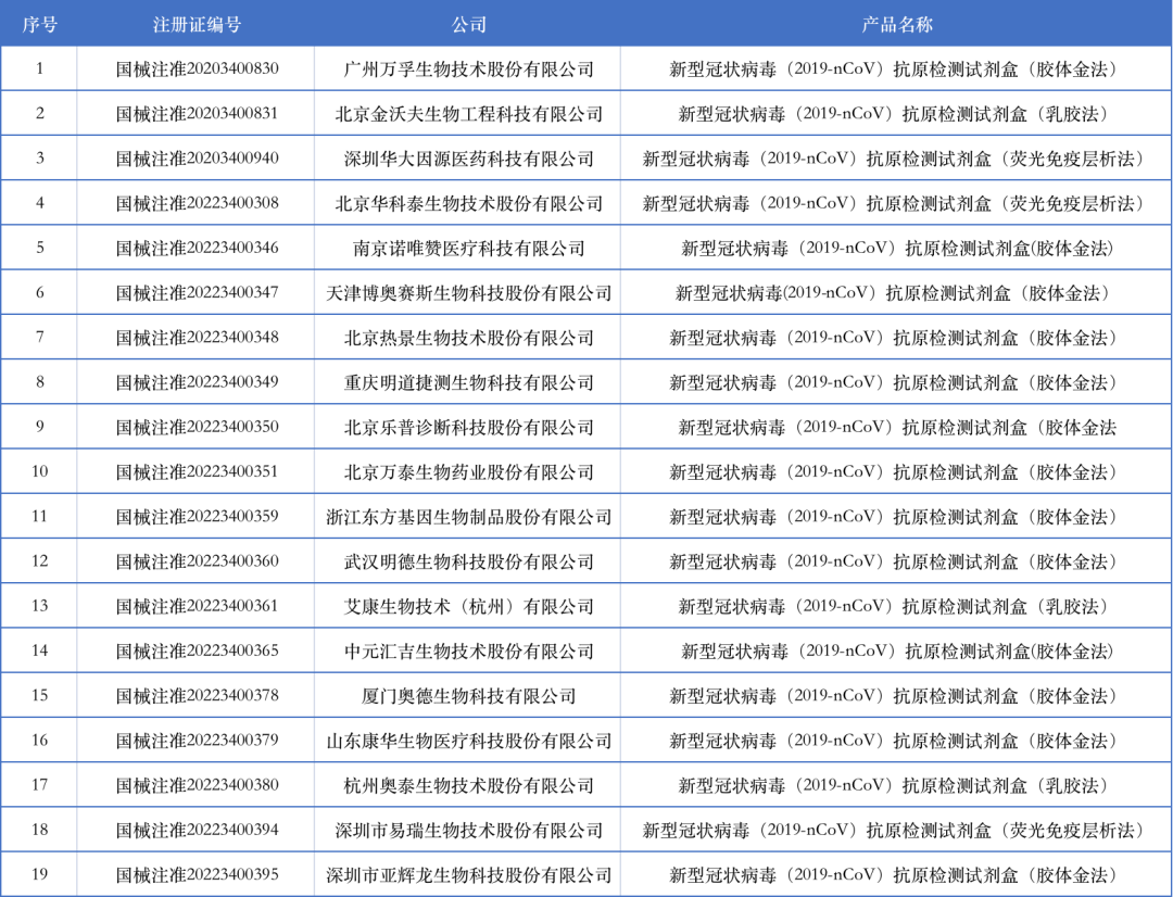 表(biao)2:國內獲批抗原檢測(ce)試劑盒企(qi)業