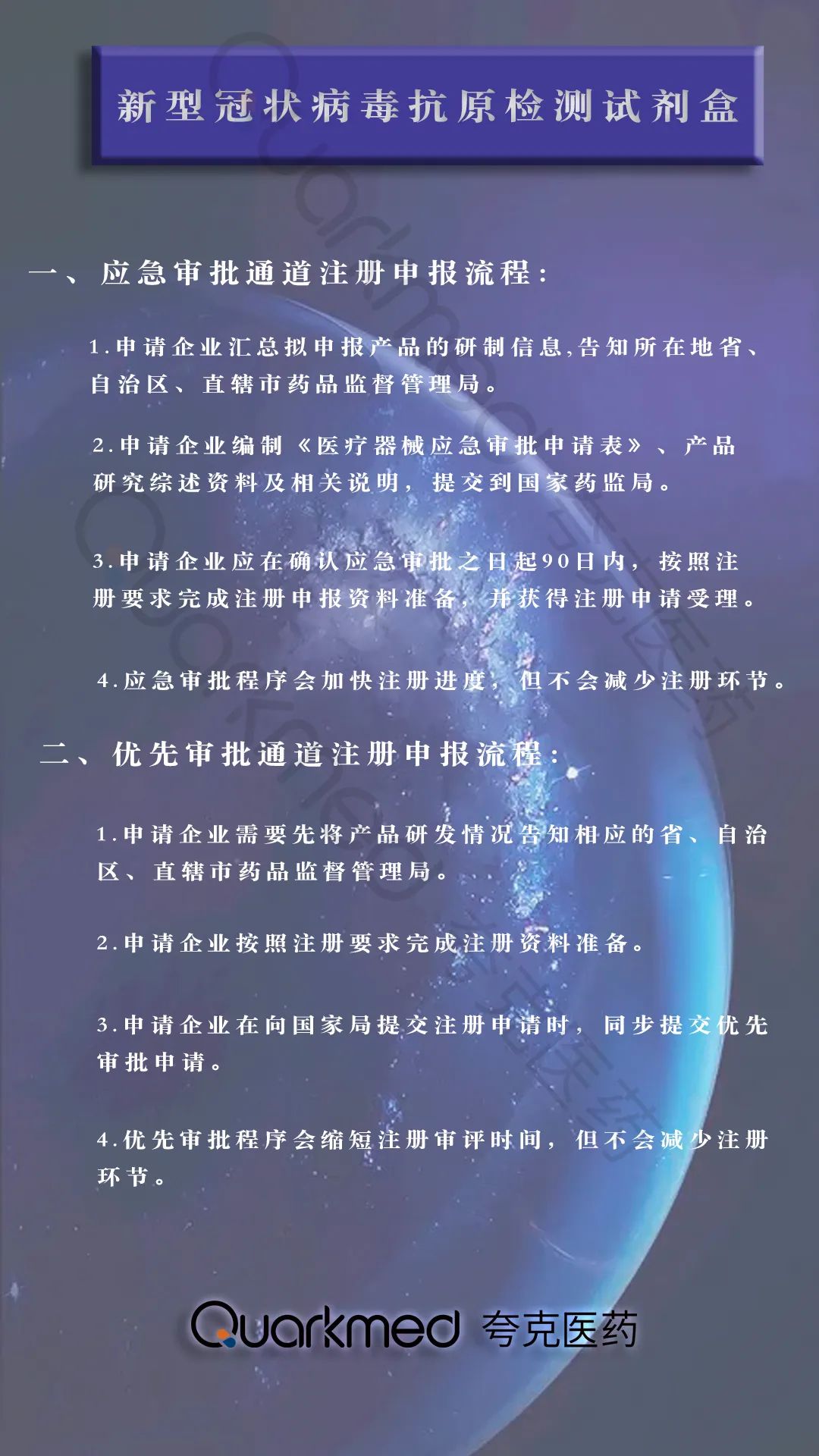 夸克醫藥擁有完善的服務體系和專業的服務團隊,能夠快速的完成注冊、臨床試驗、GMP現場體系考核,拿到三類醫療器械注冊證和生產證,助力客戶為抗疫做出更多貢獻。