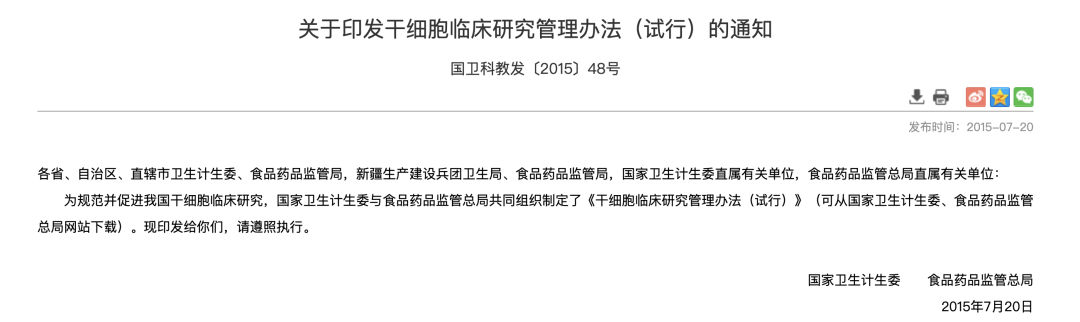 但寬(kuan)松的(de)政策(ce)環境,除了(le)促(cu)進了(le)干(gan)細胞(bao)(bao)行(xing)業(ye)的(de)發展,但是另一方面也(ye)使干(gan)細胞(bao)(bao)行(xing)業(ye)變得魚龍(long)混雜(za),良莠(you)不(bu)齊(qi)。為了(le)從(cong)源頭(tou)上規范醫(yi)療(liao)技術(shu)使用、遏制(zhi)濫用,2015年(nian)初,國(guo)務院決定(ding)取消(xiao)“非行(xing)政許可審(shen)批(pi)”這一審(shen)批(pi)類(lei)別,在此背景下,原國(guo)家(jia)衛生(sheng)計(ji)生(sheng)委取消(xiao)了(le)第(di)三類(lei)醫(yi)療(liao)技術(shu)臨(lin)床(chuang)應用準入審(shen)批(pi)。然而,取消(xiao)審(shen)批(pi)并不(bu)等于放手不(bu)管。同年(nian),為規范并促(cu)進我國(guo)干(gan)細胞(bao)(bao)臨(lin)床(chuang)研(yan)究,國(guo)家(jia)衛生(sheng)計(ji)生(sheng)委與食(shi)品藥(yao)品監管總(zong)局共同組織制(zhi)定(ding)了(le)《干(gan)細胞(bao)(bao)臨(lin)床(chuang)研(yan)究管理辦法(試行(xing))》,這也(ye)是目前醫(yi)藥(yao)行(xing)業(ye)進行(xing)干(gan)細胞(bao)(bao)臨(lin)床(chuang)研(yan)究時(shi)遵循的(de)總(zong)指導原則(ze)。