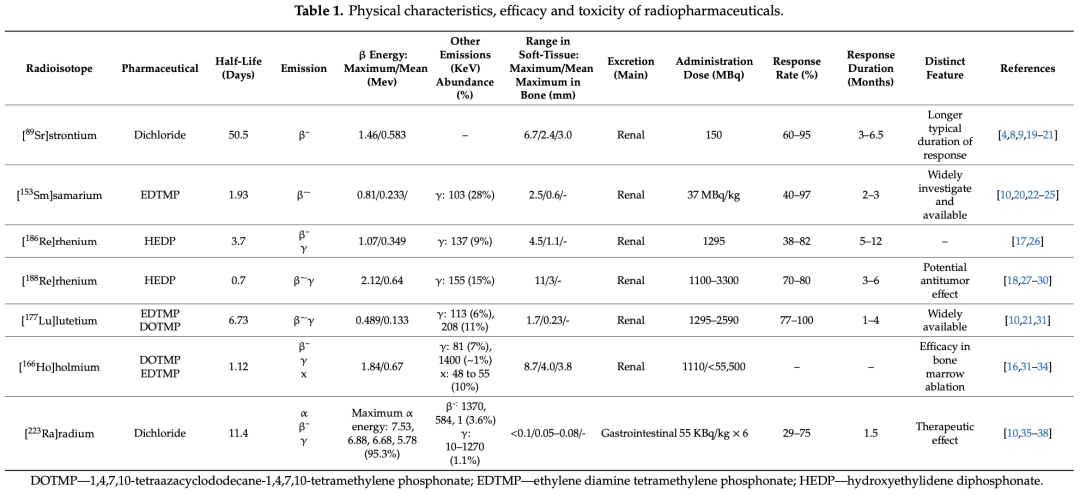 骨(gu)(gu)靶向放射性(xing)藥(yao)物(wu)(wu)(wu)在(zai)緩解骨(gu)(gu)痛(tong)方(fang)(fang)面(mian)展現出(chu)顯著(zhu)(zhu)(zhu)的(de)優勢,同(tong)時(shi)也面(mian)臨著(zhu)(zhu)(zhu)一(yi)些挑戰(zhan)。這些藥(yao)物(wu)(wu)(wu)能夠(gou)同(tong)時(shi)治療(liao)(liao)多個轉移灶,具有(you)(you)可(ke)重(zhong)復性(xing),并(bing)且(qie)可(ke)以與(yu)其他(ta)治療(liao)(liao)方(fang)(fang)法(如(ru)(ru)化(hua)療(liao)(liao)、放療(liao)(liao)等)聯(lian)合(he)使用,以增強治療(liao)(liao)效(xiao)果。例如(ru)(ru),氯(lv)化(hua)鍶(89Sr)注射液(ye)和[153Sm]釤-EDTMP等藥(yao)物(wu)(wu)(wu)在(zai)緩解骨(gu)(gu)痛(tong)方(fang)(fang)面(mian)表現出(chu)較(jiao)(jiao)高(gao)(gao)的(de)響應(ying)率,分別(bie)為60-95%和40-97%,并(bing)且(qie)疼痛(tong)緩解通常在(zai)給藥(yao)后(hou)數天內開始,持續(xu)時(shi)間(jian)可(ke)達(da)數月。此外,多菲戈®(氯(lv)化(hua)鐳[223Ra]注射液(ye))不僅(jin)在(zai)緩解疼痛(tong)方(fang)(fang)面(mian)有(you)(you)效(xiao),還在(zai)延長生存期(qi)方(fang)(fang)面(mian)顯示(shi)出(chu)顯著(zhu)(zhu)(zhu)優勢,盡管其成本較(jiao)(jiao)高(gao)(gao)且(qie)全球(qiu)可(ke)用性(xing)有(you)(you)限。骨(gu)(gu)靶向放射性(xing)藥(yao)物(wu)(wu)(wu)也存在(zai)一(yi)些問題(ti),比如(ru)(ru)這些藥(yao)物(wu)(wu)(wu)的(de)療(liao)(liao)效(xiao)在(zai)不同(tong)患者(zhe)之間(jian)存在(zai)差異,部分患者(zhe)可(ke)能對治療(liao)(liao)無響應(ying);放射性(xing)藥(yao)物(wu)(wu)(wu)的(de)使用受到患者(zhe)腎功能、骨(gu)(gu)髓儲(chu)備和預期(qi)壽命等因(yin)(yin)素(su)的(de)限制(zhi)。因(yin)(yin)此,開發易于(yu)獲取、成本效(xiao)益高(gao)(gao)且(qie)療(liao)(liao)效(xiao)顯著(zhu)(zhu)(zhu)的(de)新骨(gu)(gu)靶向放射性(xing)藥(yao)物(wu)(wu)(wu)迫在(zai)眉睫。