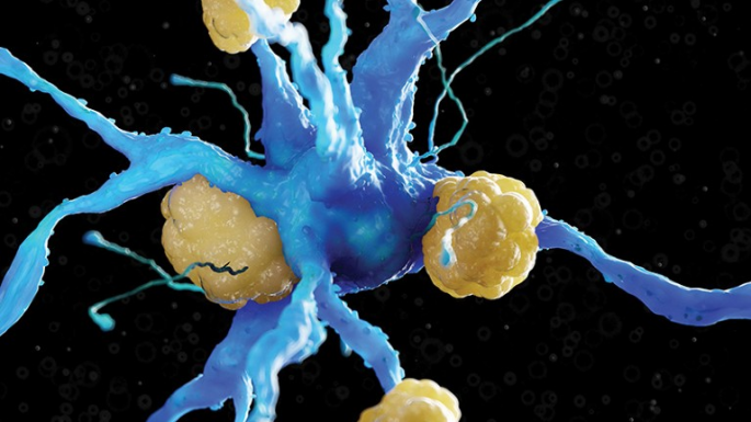 神(shen)經(jing)細(xi)胞(bao)上β-淀粉樣蛋(dan)白的(de)插圖。圖片來源:Sebastian Kaulitzki/ Science Photo Library/ Getty Images