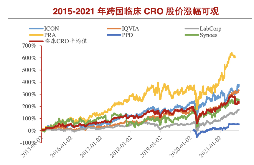 全球(qiu)臨床CRO服務市場集中度開始加速提升(sheng),臨床CRO服務行業投(tou)資(zi)收(shou)益(yi)率也(ye)明顯高(gao)于制藥企業。對比海外MNC以及臨床CRO平均漲(zhang)幅,比例為(wei)(wei)81% vs 229%,從投(tou)資(zi)收(shou)益(yi)角(jiao)度來看(kan)作為(wei)(wei)創新(xin)藥研(yan)發產業鏈上游服務方的臨床CRO收(shou)益(yi)更顯著(zhu),主要是高(gao)研(yan)發投(tou)入(ru)推(tui)動上游臨床CRO更高(gao)景(jing)氣(qi)。