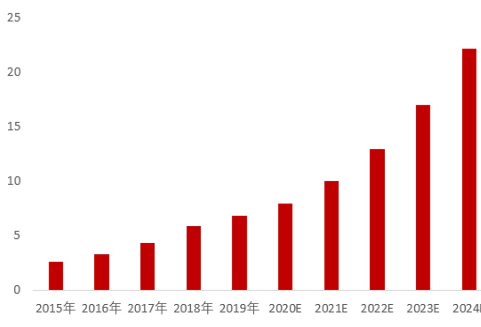 中國CRO服務(wu)市場占全球市場的(de)比重(zhong)變化近乎翻(fan)倍增長(chang),主要由于中國CRO服務(wu)市場受益于較大的(de)患者基數和人口基數、廣泛的(de)疾病譜、較低的(de)試驗成本等因素。預計未來整體比重(zhong)仍將(jiang)快速增長(chang)。